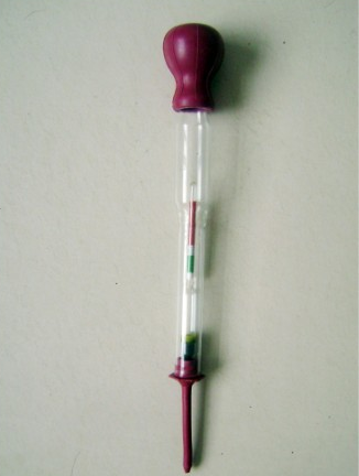 我們就是用比重計(jì)來測量搬運(yùn)車電池堆高車電池叉車蓄電池的電解液的比重的,比重計(jì)的照片如下: