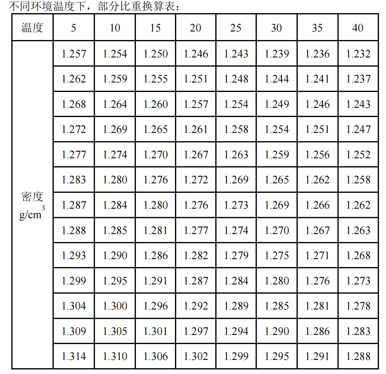 注:在 25 度環(huán)境溫度時(shí),蓄電池電解液在充足狀態(tài)的標(biāo)準(zhǔn)比重一般為:1.28。 Dt=Da-- 0.0007(t-25) ; 式中的 Da 為 25℃時(shí)的密度; Dt 為實(shí)際溫度時(shí)的密度; t 為測定時(shí)電解液的溫度。